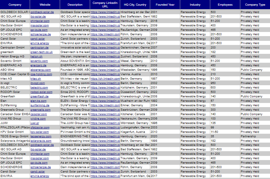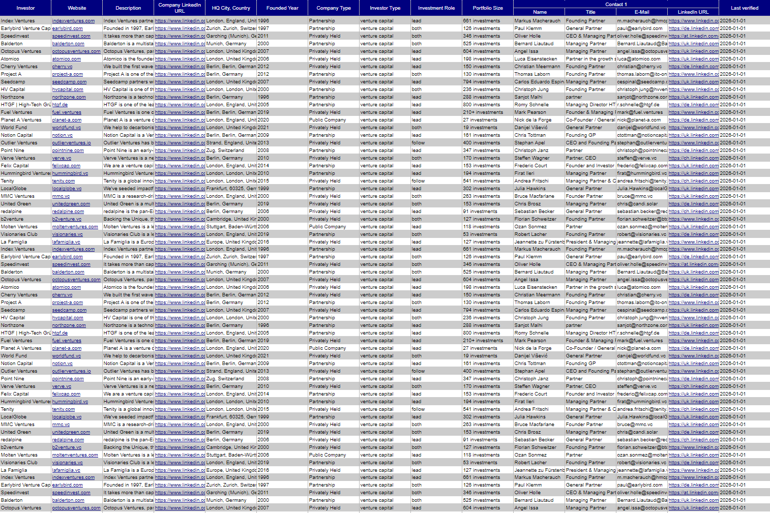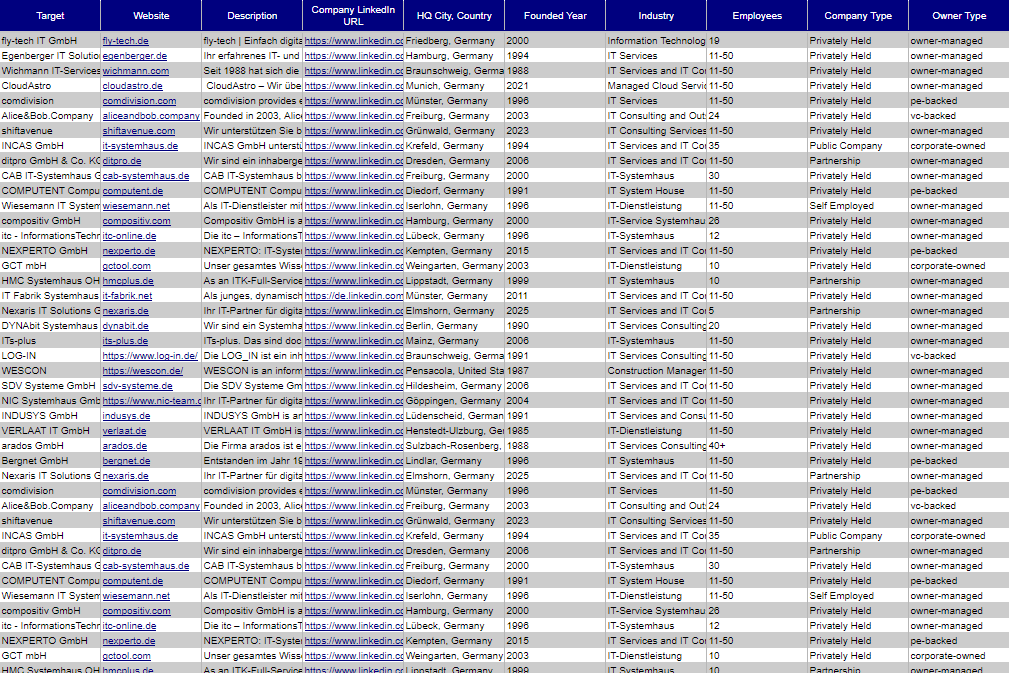 Custom lists for Lead Generation, M&A Target Search, and Investor Scouting.