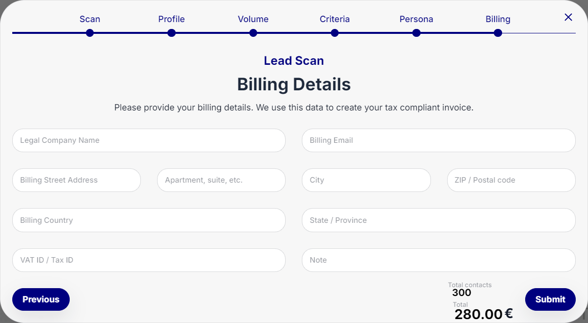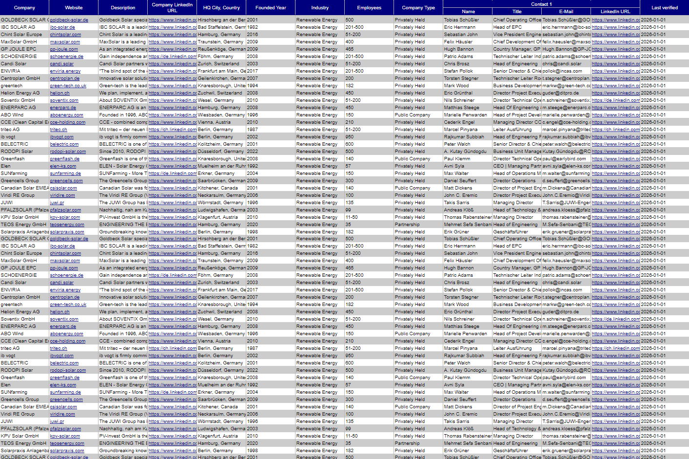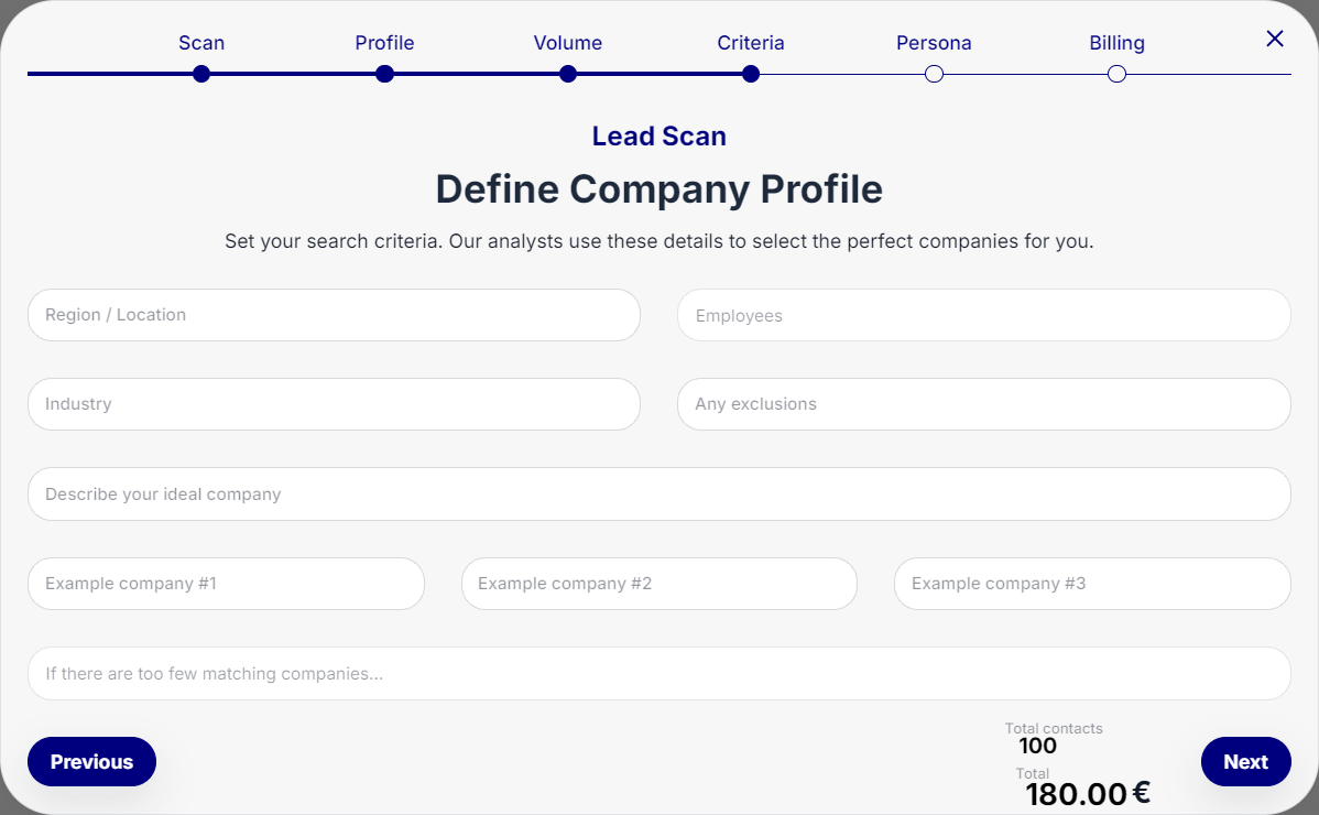 Human intelligence first. Based on your configuration, we manually select the companies that match your need. We prioritize relevance over volume, ensuring the basis of your list is accurate.