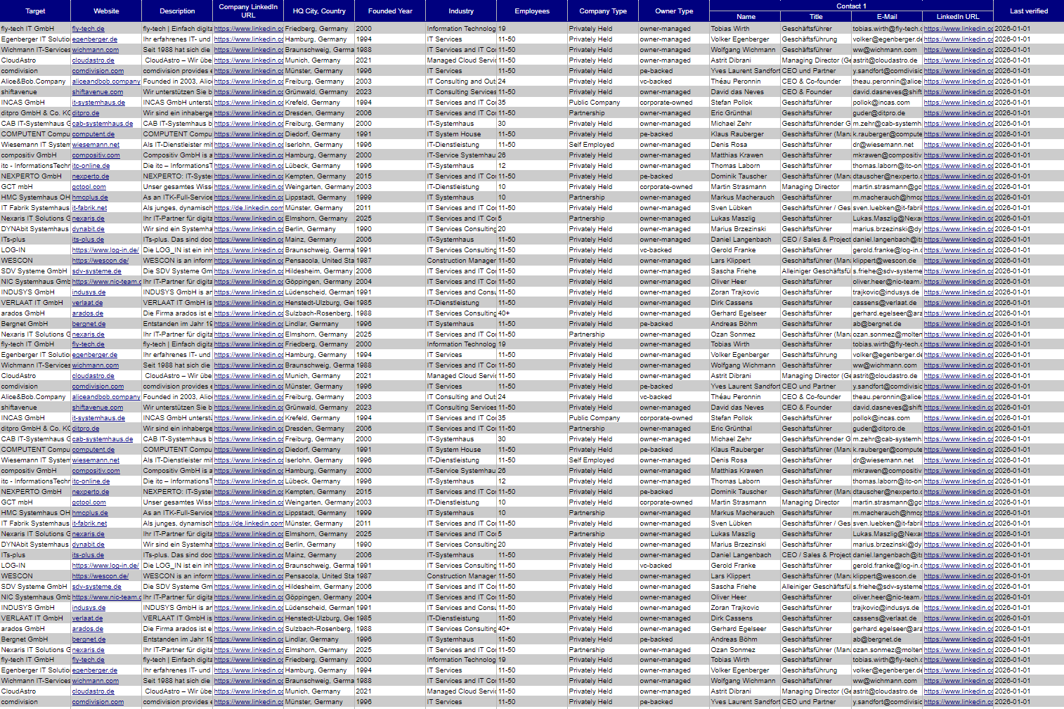 Every company and every contact is manually checked to eliminate false signals and protect your reputation.